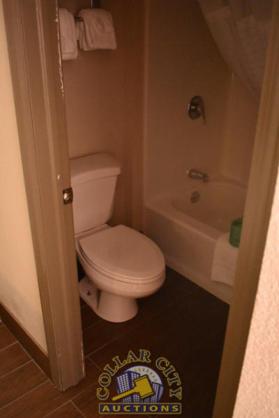 #35 – ROOM CONTENTS OF ROOM 508 (DOUBLE FULL BED ROOM) CONSISTING OF: DOUBLE BED FRAME, WALL MOUNT HEADBOARD, INCLUDING FREE MATTRESS AND BOX SPRING; NIGHTSTAND; DRESSER; ASSORTED CHAIRS AND LAMPS; SINK; TOILET. MIRRORS ARE NOT INCLUDED. BEDDING, TVs, COFFEE MAKERS, ETC., IN ANY PHOTOS ARE NOT INCLUDED.