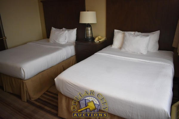 ROOM CONTENTS OF ROOM 512 (DOUBLE FULL SIZE ROOM) CONSISTING OF: 2 FULL SIZE BED FRAMES, WALL MOUNT HEADBOARDS; INCLUDING FREE MATTRESSES AND BOX SPRINGS; AMANA HEAT AND AIR CONDITIONING UNIT, 240 VOLTS; NIGHTSTAND; DRESSER, APPROX. 60" X 18"; APPROX. 68" TALL PEDESTAL LAMP; APPROX. 30" ROUND TABLE; 2-DOOR CABINET; APPROX. 33" SINK; TOILET; IRON AND IRONING BOARD; HAIR DRYER. MIRRORS ARE NOT INCLUDED. BEDDING, TVs, COFFEE MAKERS, ETC., IN ANY PHOTOS ARE NOT INCLUDED.