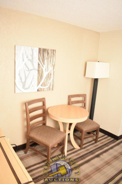 #40 – ROOM CONTENTS OF ROOM 513 (KING BED ROOM) CONSISTING OF: KING SIZE BED FRAME, WALL MOUNT HEADBOARD, INCLUDING FREE MATTRESS AND BOX SPRINGS; PULL OUT COUCH; 2-DOOR CABINET; NIGHTSTAND; IRONING BOARD AND IRON; HAIR DRYER. MIRRORS ARE NOT INCLUDED. BEDDING, TVs, COFFEE MAKERS, ETC., IN ANY PHOTOS ARE NOT INCLUDED.