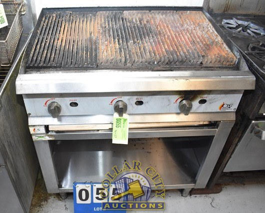 CPG 3-BURNER CHARBROILER ON STAND, APPROX. 36" WIDE X 27" DEEP