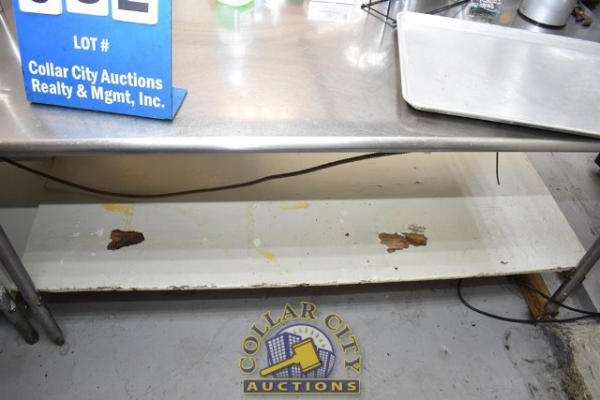 STAINLESS STEEL WORK TABLE WITH SHELVES, APPROX. 72" WIDE X 36" DEEP X 64" TALL