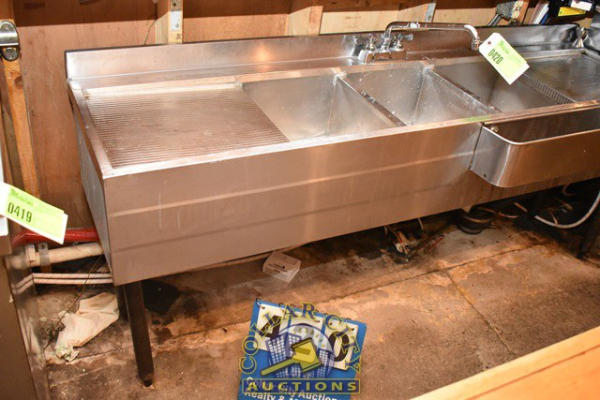 APPROX. 72" 3-BAY UNDER-BAR SINK WITH DRYING RACKS AND SPEED RACK