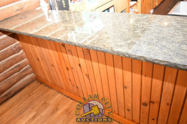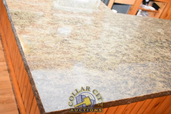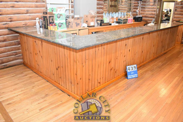 L-SHAPED BAR, APPEARS TO BE GRANITE COUNTERTOP, FRONT IS APPROX. 19' 2" LONG, SIDE IS APPROX. 7' LONG