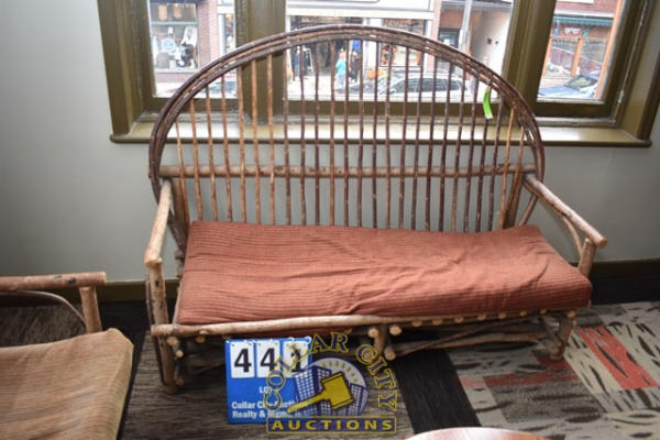 ADIRONDACK STYLE COUCH WITH CUSHION, APPROX. 64" LONG