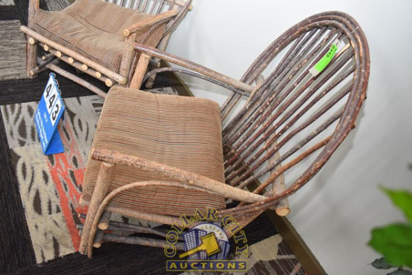 PAIR OF ADIRONDACK STYLE CHAIRS WITH CUSHIONS