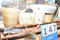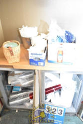 CONTENTS OF WORK TABLE CONSISTING OF BASKETS, COCA COLA CUPS, ETC.