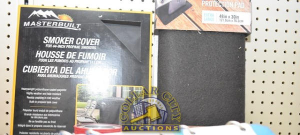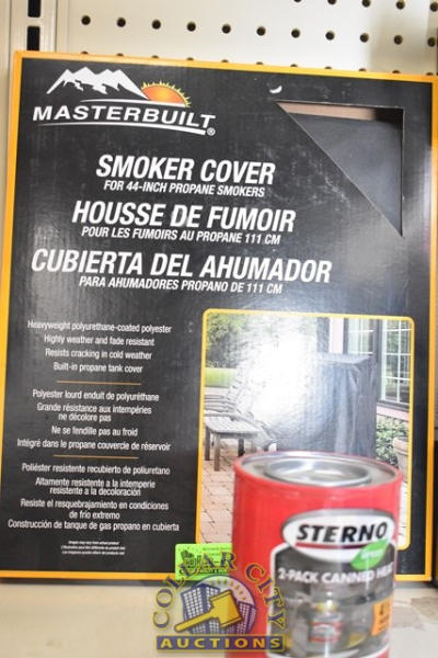 SMOKER COVER FOR A 44" PROPANE SMOKERS, 2 PACKS OF STERNO, AND A GAS GRILL PROTECTION PAD (48" X 30")