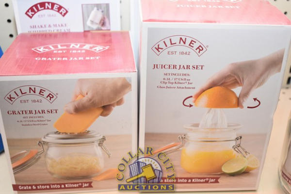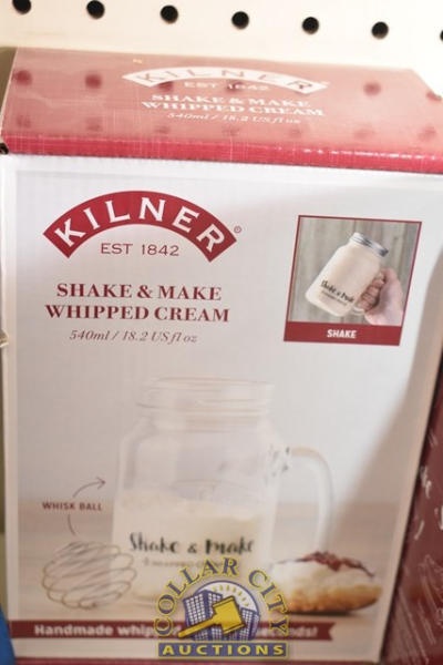 LOT OF KILNER PRODUCTS CONSISTING OF GRATER JAR SET, JUICER JAR SET, SHAKE AND MAKE WHIPPED CREAM SET