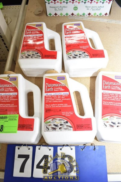 LOT OF 5 BONIDE DIATOMACEOUS EARTH CRAWLING INSECT KILLER, 1.3 LB CONTAINERS