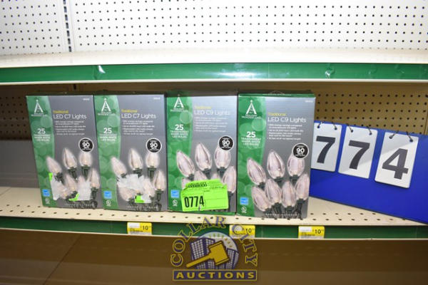 SHELF LOT OF LED C7 CHRISTMAS LIGHTS