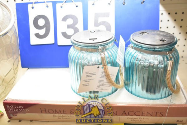 HOME AND GARDEN ACCENTS ELECTRO PLATED GLASS JAR LANTERN, BATTERY OPERATED