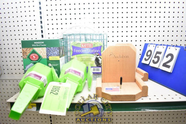 LOT CONSISTING OF SEED SCOOP, WINDOW BIRD FEEDER, FEEDER STATION, ETC.