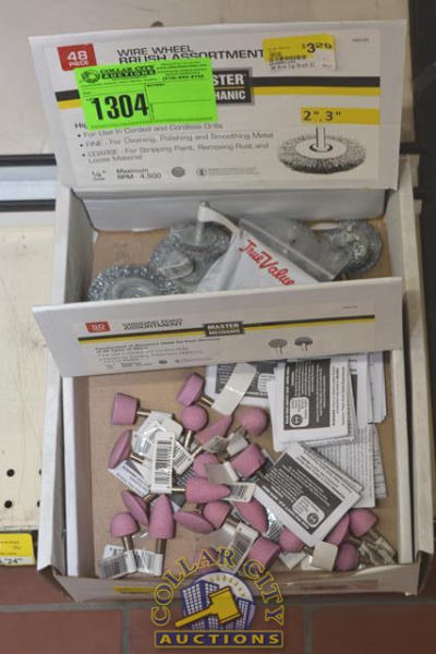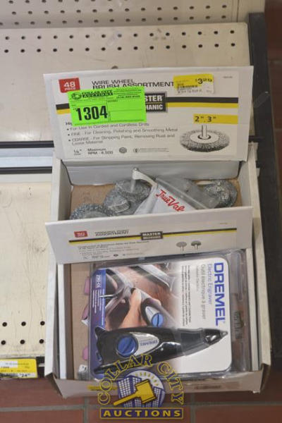 LOT CONSISTING OF 2" & 3" WIRE BRUSH ASSORTMENTS AND GRINDING POINT ASSORTMENTS, ALSO INCLUDES A DREMEL ELECTRIC ENGRAVER