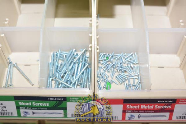 ORGANIZER BIN CONSISTING OF WOOD SCREWS AND SHEET METAL SCREWS