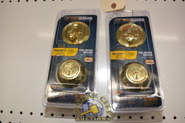 LOT OF 2 TRUE GUARD DEADBOLTS, POLISHED BRASS