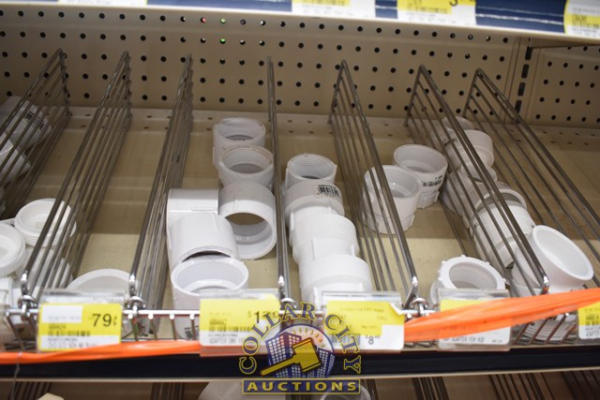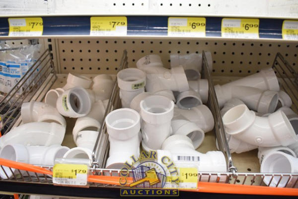 SHELF LOT OF PVC FITTINGS, MOST APPEAR TO BE 1 1/2"