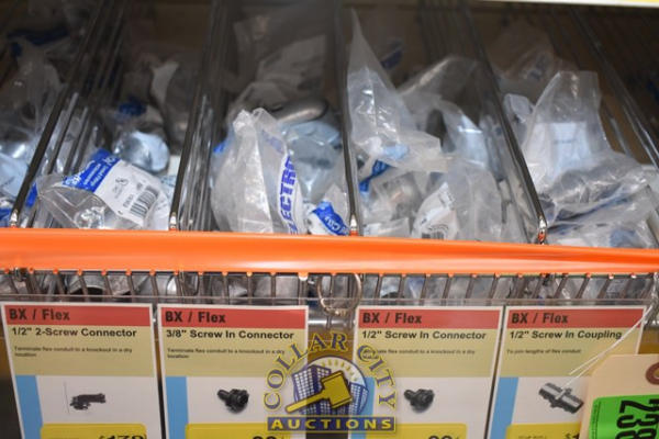 SHELF LOT OF EMT FITTINGS FROM 1/2", 3/4" AND 1"