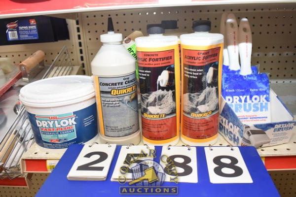 LOT CONSISTING OF DRY LOK, FAST PLUG HYDRAULIC CEMENT, CONCRETE CRACK SEALER, ACRYLIC FORTIFIER AND DRY LOK BRUSHES