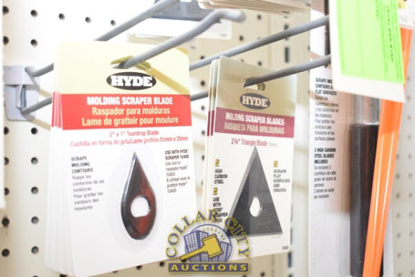 LOT OF MOLDING SCRAPER BLADES, MOLDING SCRAPER, 4" REPLACEMENT BLADES, ETC.