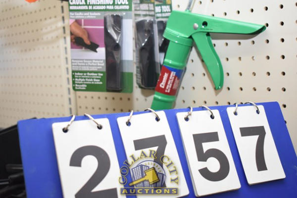 LOT OF CAULK GUN, CAULK FINISHING TOOL, CAULK STRIP