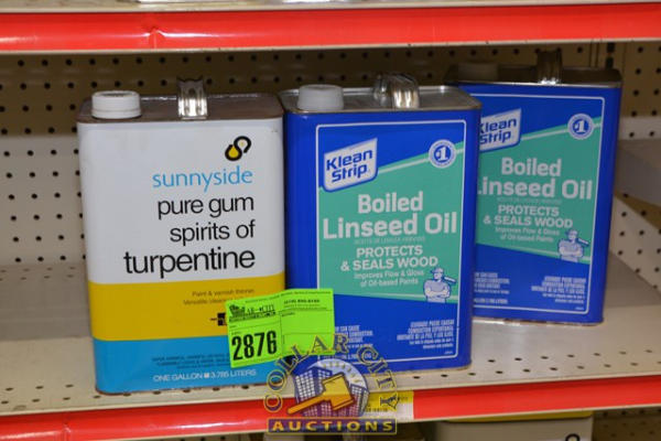1 GALLON OF SUNNYSIDE PURE GUM SPIRITS OF TURPENTINE AND 2 GALLONS OF BOILED LINSEED OIL
