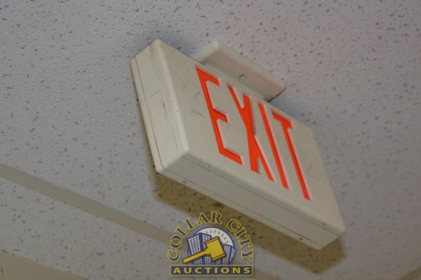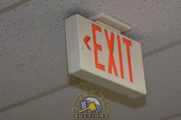 LOT OF 7 EXIT SIGNS AND 12 BATTERY POWERED SAFETY LIGHTS