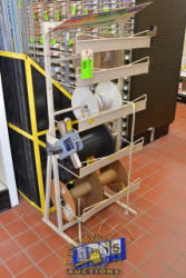 ROPE RACK WITH CONTENTS OF ASSORTED ROPE AND ROPE MEASURING DEVICE