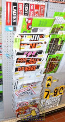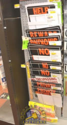 LOT OF HIGH VISIBILITY SIGNS INCLUDING "HELP WANTED", "BEWARE OF DOG", "NO SMOKING", "NO PARKING", "NO TRESPASSING", "PRIVATE PROPERTY", ETC.