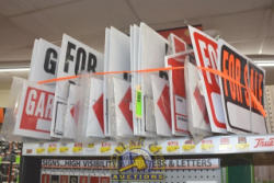 LOT OF SIGNS INCLUDING SMALL STICK ON "EXIT", "NO SMOKING", "GENTLEMEN", "LADIES", ARROWS, ALSO INCLUDES MAGNETIC SIGN KITS, HOURS, "FOR SALE", "FOR SALE BY OWNER", "CLEAN UP AFTER YOUR PET", ETC.