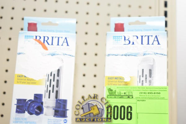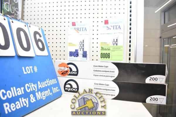LOT OF 2 BRITA FILTER AND FILTER ADAPTERS, ALSO INCLUDES 2 PACKS OF CONE WATER CUPS