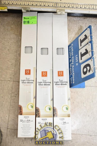 LOT OF 3 HOME POINT 1" LIGHT FILTERING MINI BLINDS, 32" X 64"