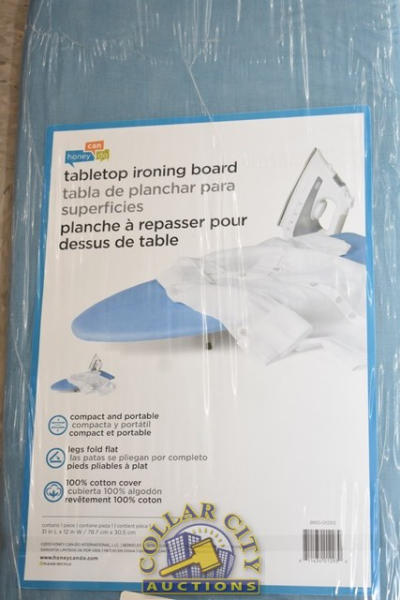 IRONING BOARD, ADJUSTABLE HEIGHT 27" - 36", ALSO INCLUDES TWO TABLE TOP IRONING BOARDS