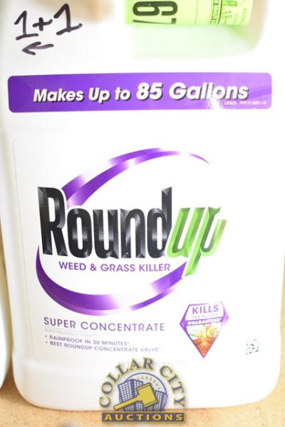 ROUND UP WEED AND GRASS KILLER, 1 GALLON SUPER CONCENTRATE AND READY TO USE SPRAY BOTTLE