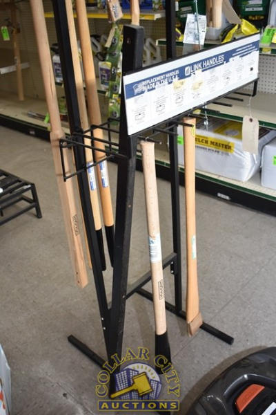 LOT OF HAMMER AND SMALL SLEDGE HAMMER HANDLES AND PICK AX HANDLES