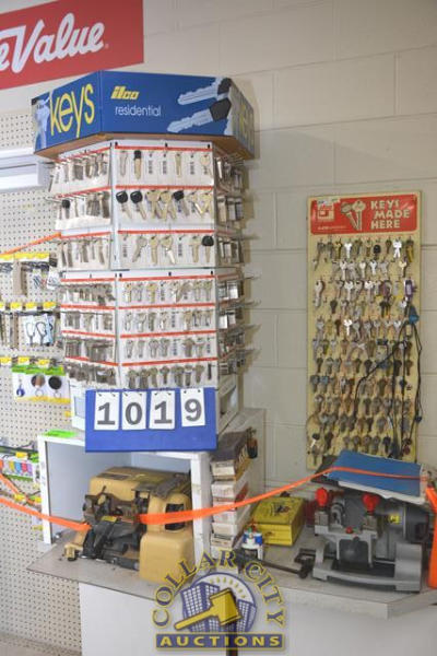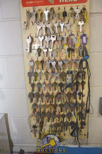 KEY MAKING STATION WITH ASSORTED KEYS, ALSO INCLUDES 2 KEY CUTTING MACHINES