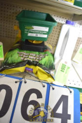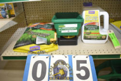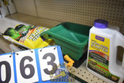 LOT CONSISTING OF BONIDE LAWN SEED STARTER FERTILIZER, HAND HELD SPREADER AND BAG OF BONIDE LAWN SEED STARTER FERTILIZER WITH SLOW RELEASE FERTILIZER, 10-25-12