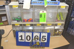 10-DRAWER ORGANIZER BIN WITH KEY COLOR TAGS, KEY CHAINS, ETC.