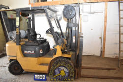 CATERPILLAR MODEL GP25K PROPANE FORKLIFT, APPROX. 6115 HOURS, INCLUDES ADDITIONAL PROPANE TANKS, TRIPLE MAST