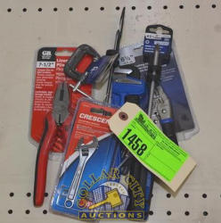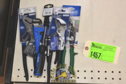 SMALL TOOL LOT CONSISTING OF PIPE WRENCHES, LINEMAN'S PLIERS, SCREWDRIVER, SMALL CLAMP