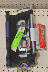 LOT OF 3 C CLAMPS AND A MITER BOX