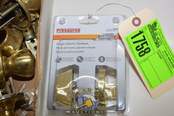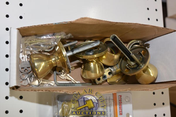 LOT OF ASSORTED DOOR KNOB PARTS AND A PRO SOURCE DEADBOLT