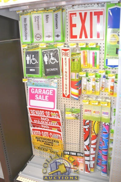 LARGE LOT OF SIGNS INCLUDING "GARAGE SALE", "BEWARE OF DOG", "MEN'S ROOM", "WOMEN'S ROOM", "NO SOLICITORS", "EMPLOYEES ONLY", "EXIT", ADDRESS PLATES FOR 911