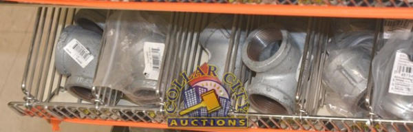 SHELF LOT OF GALVANIZED FITTINGS, MOST APPEAR TO BE 1 1/4"