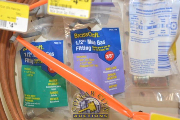 LOT CONSISTING OF A BRASS CRAFT 5/8" GAS CONNECTOR KIT, 3/8" COPPER LINE, ASSORTED FITTINGS