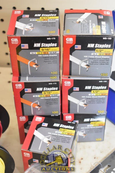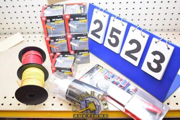 LOT CONSISTING OF CABLE STAPLES, CRIMPER KIT AND WIRE