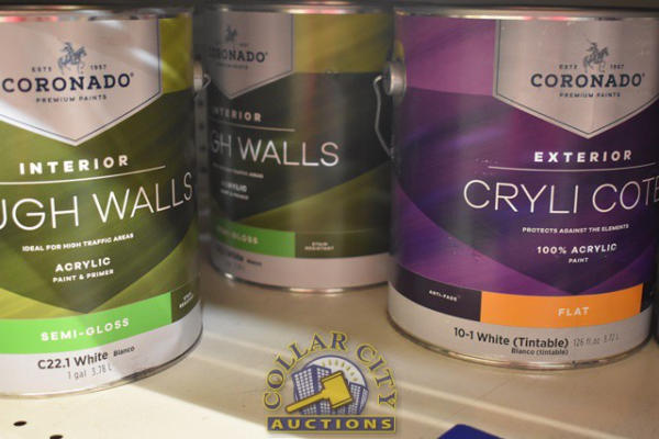 LOT OF 7 GALLONS OF INTERIOR AND EXTERIOR CORONADO BASE PAINT
