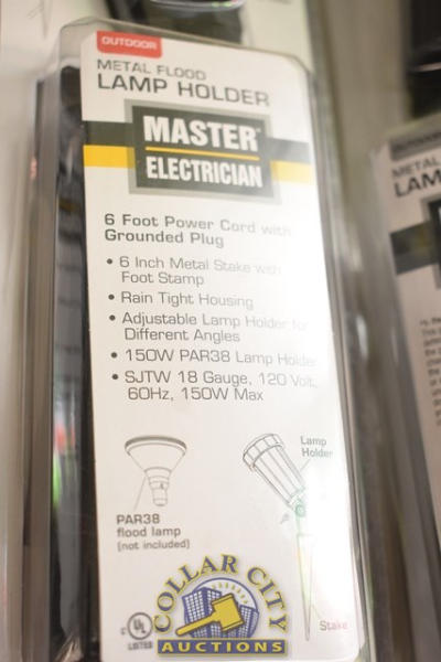 LOT OF 4 METAL FLOOD LAMP HOLDERS WITH 6' POWER CORDS