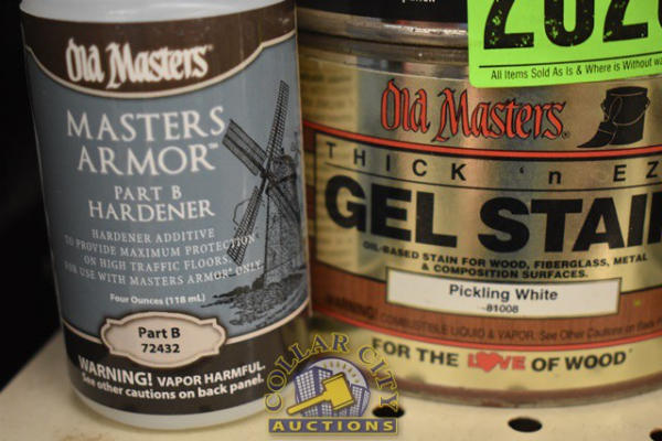 LOT OF ASSORTED GEL STAINS AND PART B HARDENER
