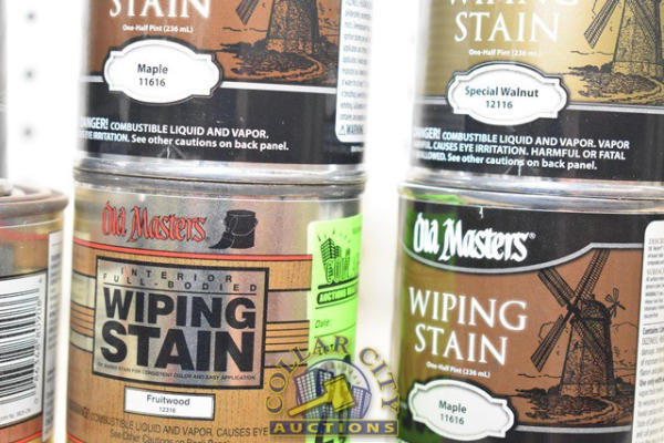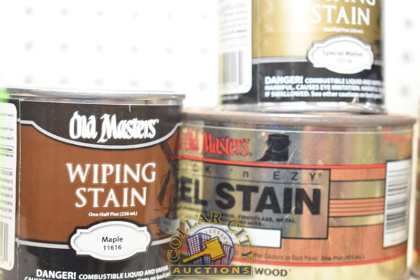 LOT OF ASSORTED GEL STAIN AND WIPING STAIN, 8 OZ CONTAINERS