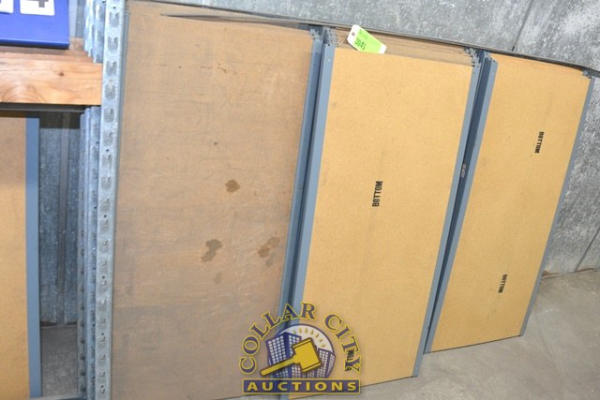 APPROX. 6 1/2' TALL SHELVING UNIT WITH 5 UPRIGHTS AND ASSORTED SHELVES